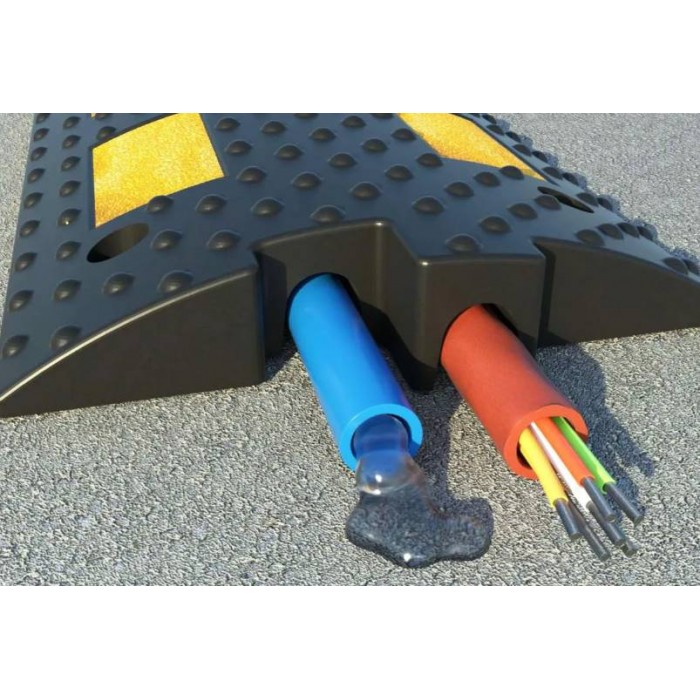 Лежачий полицейский ЛП 300, основная секция с кабель-каналом — это универсальный элемент безопасности, сочетающий функции ограничения скорости движения и защиты кабельных линий. Подходит для парковок, складов, частных территорий.