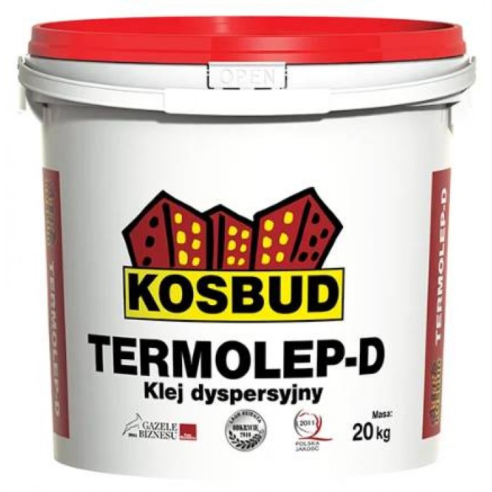 KOSBUD TERMOLEP-D — это профессиональный дисперсионный клей, предназначенный для приклеивания декоративной доски TABULO и фасадных панелей STONO. Применяется на бетонных, кирпичных, оштукатуренных, гипсовых и гипсокартонных основаниях — как внутри, так и снаружи зданий.