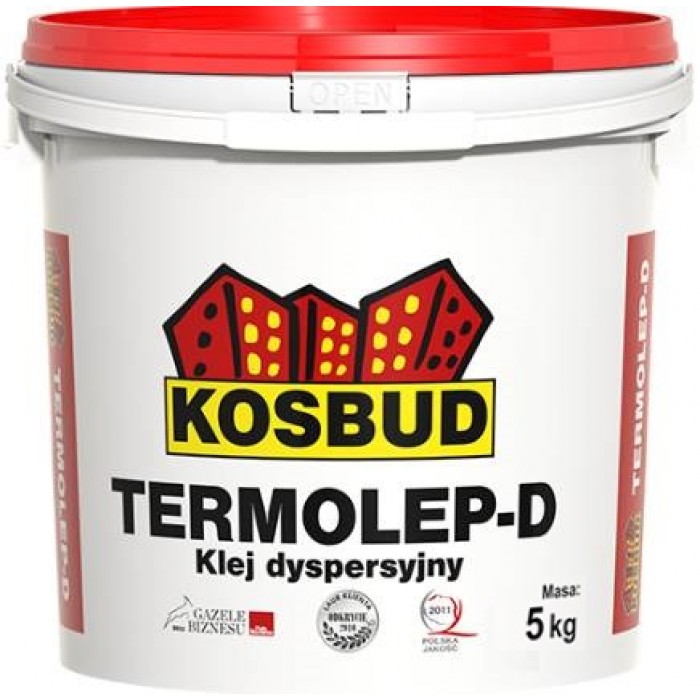 KOSBUD TERMOLEP-D — это профессиональный дисперсионный клей, предназначенный для приклеивания декоративной доски TABULO и фасадных панелей STONO. Применяется на бетонных, кирпичных, оштукатуренных, гипсовых и гипсокартонных основаниях — как внутри, так и снаружи зданий.