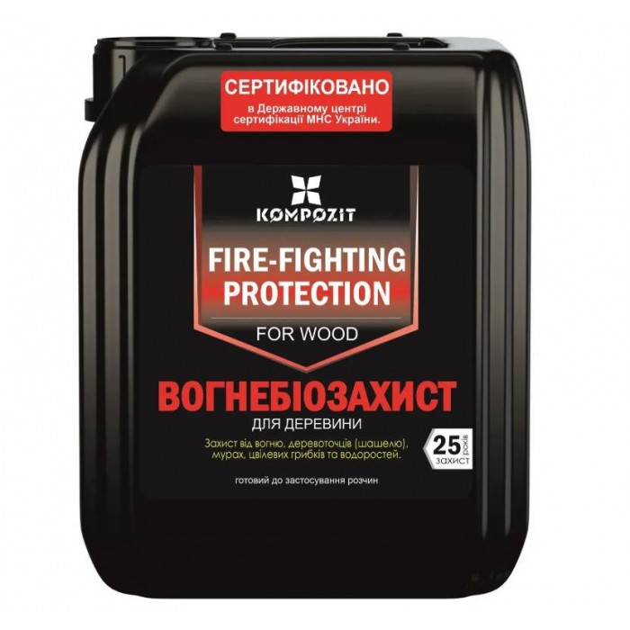 Kompozit Огнебиозащита предназначена для защиты строительных конструкций из массива дерева и древесных материалов: стропильные системы, деревянных деталей, срубов, каркасов зданий и сооружений. При этом деревянные элементы не должны подвергаться прямому воздействию влаги из атмосферных осадков. Состав защищает от появления гнили, синевы, плесень и грибков, поражения насекомыми (шашель или муравьями). После обработки деревянные элементы переводятся в категорию трудно-сгораемых материалов.