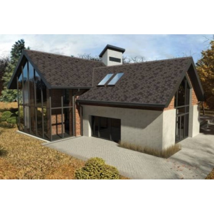 Гибкая черепица Aquaizol «Акцент» с покрытием «Графит» — один из самых популярных выборов для создания солидной и стильной крыши. Прямоугольная форма гонтов серии «Акцент» в сочетании с многотональным графитовым миксом создает впечатляющую игру света и тени, придавая кровле вид натурального сланца.