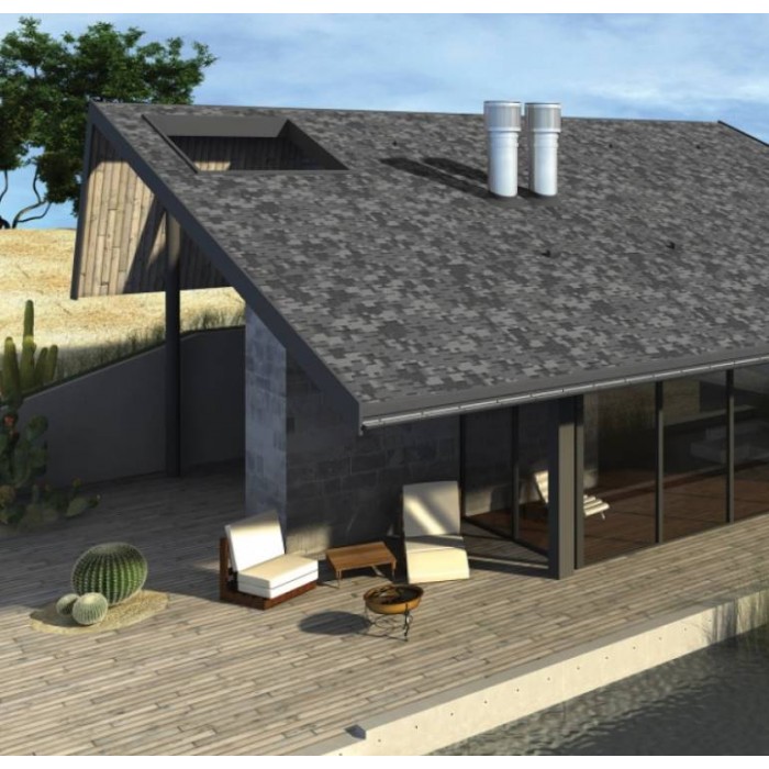 Гибкая черепица Aquaizol «Акцент» с покрытием «Маренго» — воплощение сдержанной элегантности и надежности. Многотональный микс гранулята «Маренго» в сочетании с прямоугольной формой гонтов «Акцент» усиливает теневой эффект, придавая кровле вид массивной, сланцевой кладки.