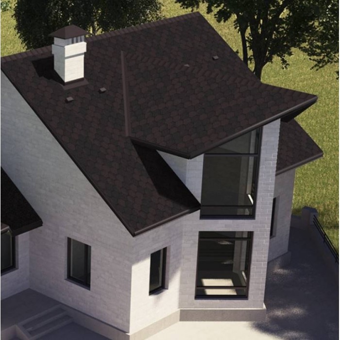 Гибкая черепица Aquaizol «Мозаика» с покрытием «Коричневый эко» является одним из самых универсальных и популярных вариантов. Классический коричневый цвет, составленный из нескольких природных тонов, обеспечивает естественную глубину и отлично гармонирует с фасадами в бежевых, кирпичных или деревянных оттенках.