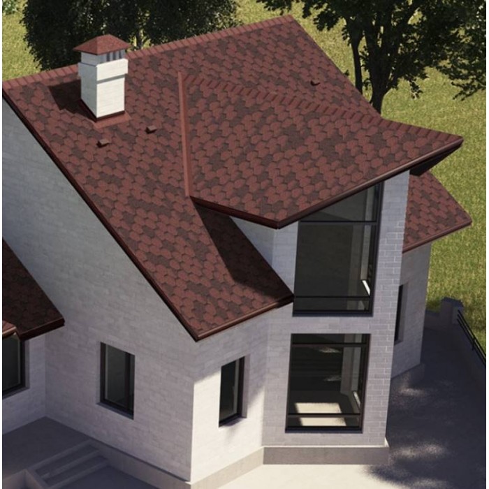 Гибкая черепица Aquaizol «Мозаика» с покрытием «Красный эко» является одним из наиболее востребованных и универсальных цветов. Его естественный красный оттенок, близкий к терракоте или кирпичу, обеспечивает традиционный европейский вид и придает кровле визуальную глубину благодаря многотональному базальтовому грануляту.