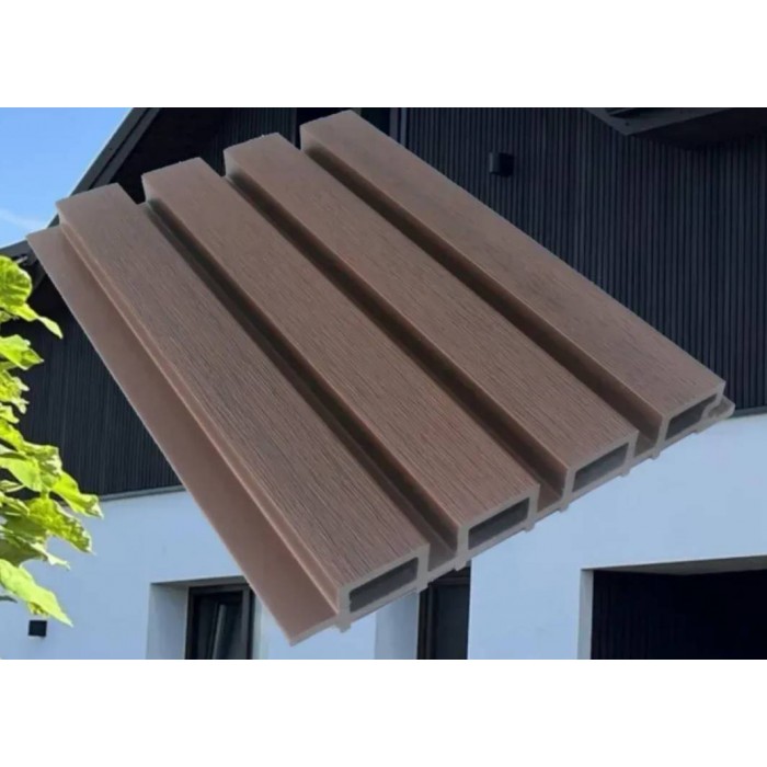 Фасадная панель рейка Шоколад 3D — это инновационный материал для наружной облицовки. Панель имитирует деревянную рейку с эффектом объема, создавая уникальный современный дизайн фасада. Изготовленная из прочного и долговечного материала, она устойчива к атмосферным воздействиям, влаге, перепадам температур и ультрафиолетовому излучению. Идеально подходит для создания стильных и надежных фасадов домов, офисов и других зданий.