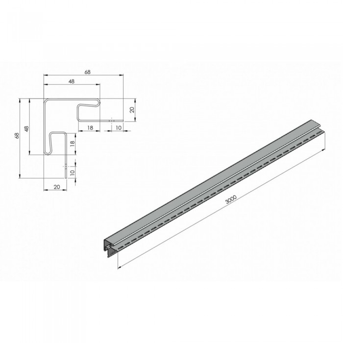 Стартовая планка (J-профиль) для софита RainWay, 3000 мм J-профиль является стандартом в монтаже виниловых софитов, обеспечивая надежное крепление