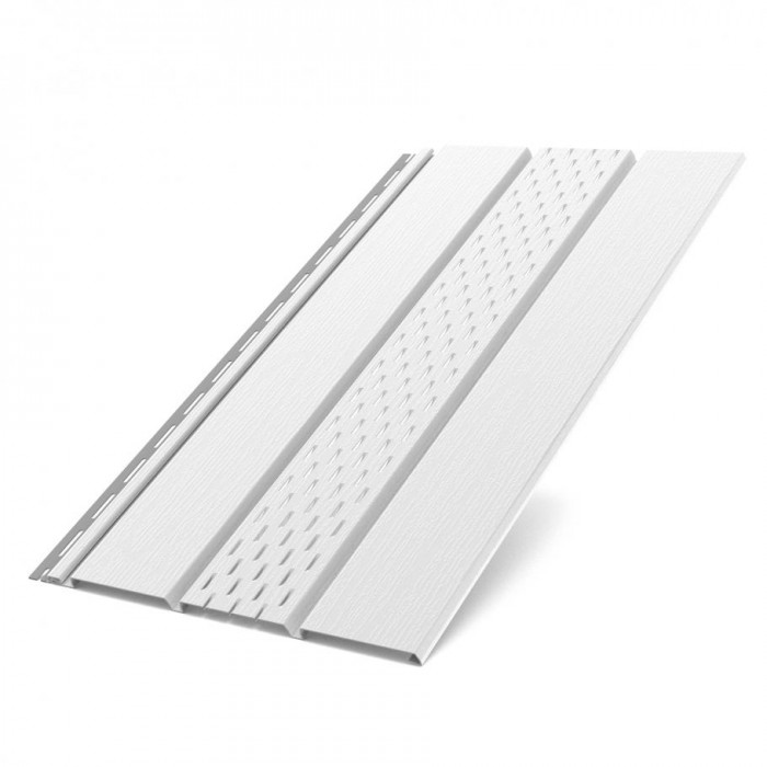 Долговечность ПВХ: Изготовлен методом коэкструзии из высококачественного первичного ПВХ, софит устойчив к механическим повреждениям, выцветанию под воздействием УФ-лучей и температурных перепадов (от −50∘C до +60∘C).