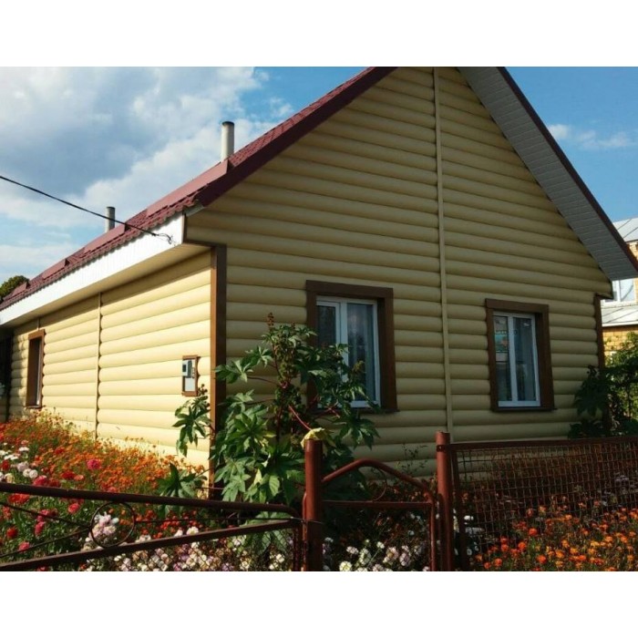 Эстетика Сруба: Поверхность панелей имеет рельефный рисунок и профиль, имитирующий деревянное бревно, придавая фасаду традиционный и уютный вид.