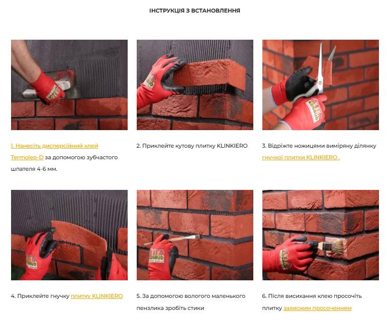 | Упаковка | Плитки KLINKIERO – коробка (~1 м²) (60 шт). Клей TERMOLEP D – упаковка 10 кг и 20 кг. Лак KLINKIERO – упаковка 1 л. |