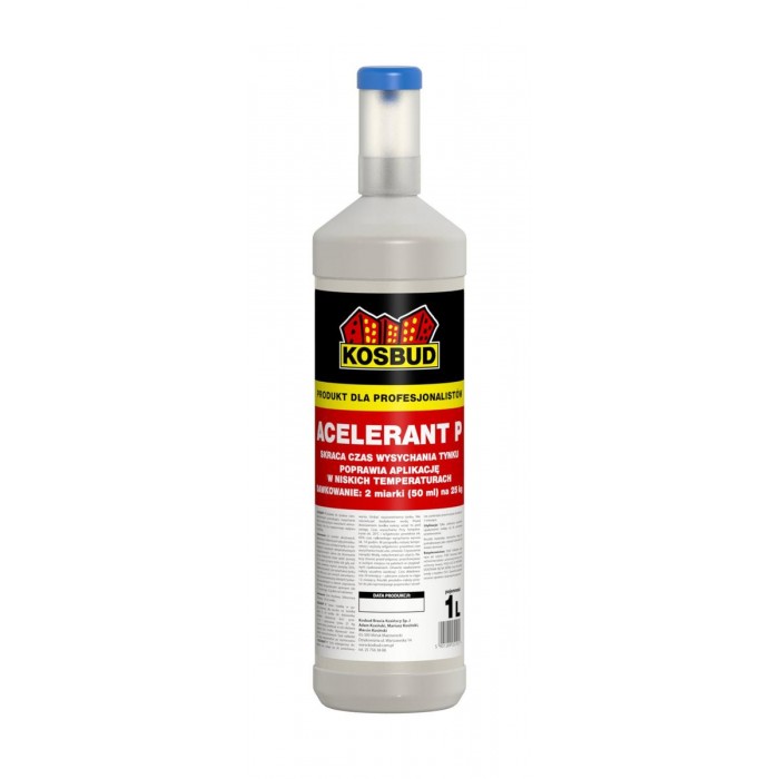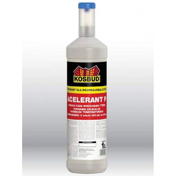 KOSBUD Acelerent P – добавка для тонкослойных штукатурок, которая позволяет штукатурке высыхать при неблагоприятных погодных условиях. 1л