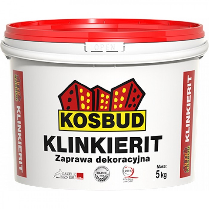 Силиконовая штукатурная масса KOSBUD KLINKIERIT предназначена для выполнения декоративных тонкослойных штукатурных покрытий внутри и снаружи зданий а также в системах теплоизоляции KOSBUD. После двукратного грунтования стены цветным грунтом GRUNLIT SL и нанесения специальных трафаретов имитирует отделку стены клинкерным кирпичом. Доступна в 5 базовых оттенках, которые полностью соответствуют цветам настоящего кирпича, отдельно возможен заказ в другом цвете предварительно проконсультировавшись со специалистами компании. Высокоэластичная, высокопаропроницаемая, стойкая к ударам и царапинам, долговечная, стойкая к ультрафиолетовому излучению, множественным загрязнениям, промышленной загазованности и развитию микроорганизмов, с повышенной гидрофобностью, способна самоочищаться. Удобная и легкая в нанесении и структурировании. Экологически безопасна.